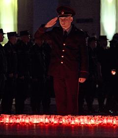 Всероссийская мемориальная акция "Свеча памяти", посвященная 83-й годовщине начала Великой Отечественной войны, на площади перед Музеем Победы. Военнослужащий во время акции.