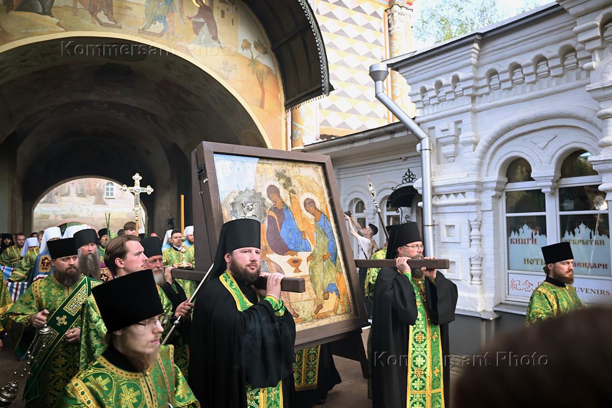 Return of Andrei Rublev's icon "Holy Trinity" to the Holy Trinity Sergius Lavra. The decision to return the shrine from the Tretyakov Gallery to its historical place was made by Russian President Vladimir Putin in May 2023. Patriarch Kirill of Moscow and All Rus' during a solemn procession with an icon to the Trinity Cathedral on the eve of the Feast of the Holy Trinity.