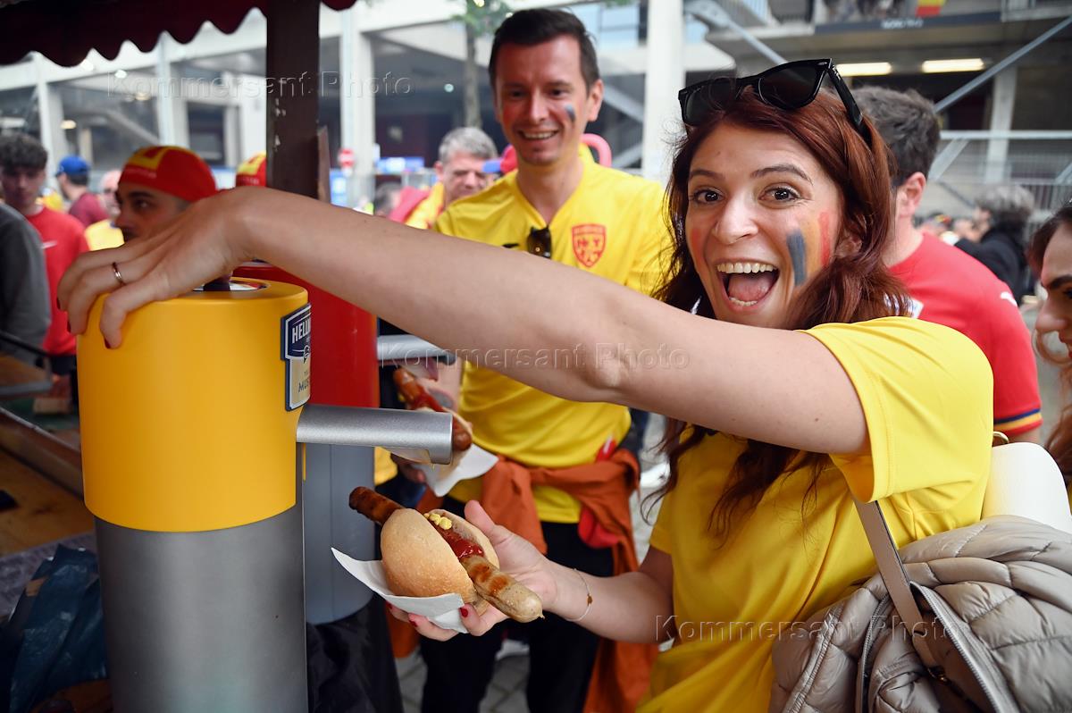 Чемпионат Европы по футболу 2024. 2-й тур. Группа E. Матч между сборными командами Бельгии и Румынии на стадионе "Райн-Энерги". Жанровая фотография. Фудкорт для болельщиков.