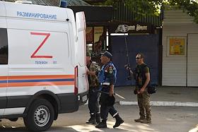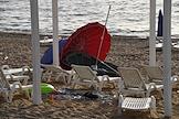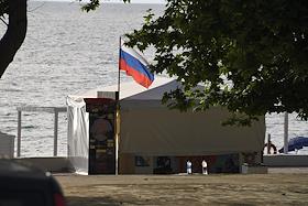 Последствия ракетного удара ВСУ по Севастополю оперативно-тактическими ракетами ATACMS, снаряженными кассетными боевыми частями. Городской пляж Учкуевка, где находились люди в момент атаки. В результате обстрела есть погибшие и раненые. Сотрудники полиции и МЧС России на пляже.