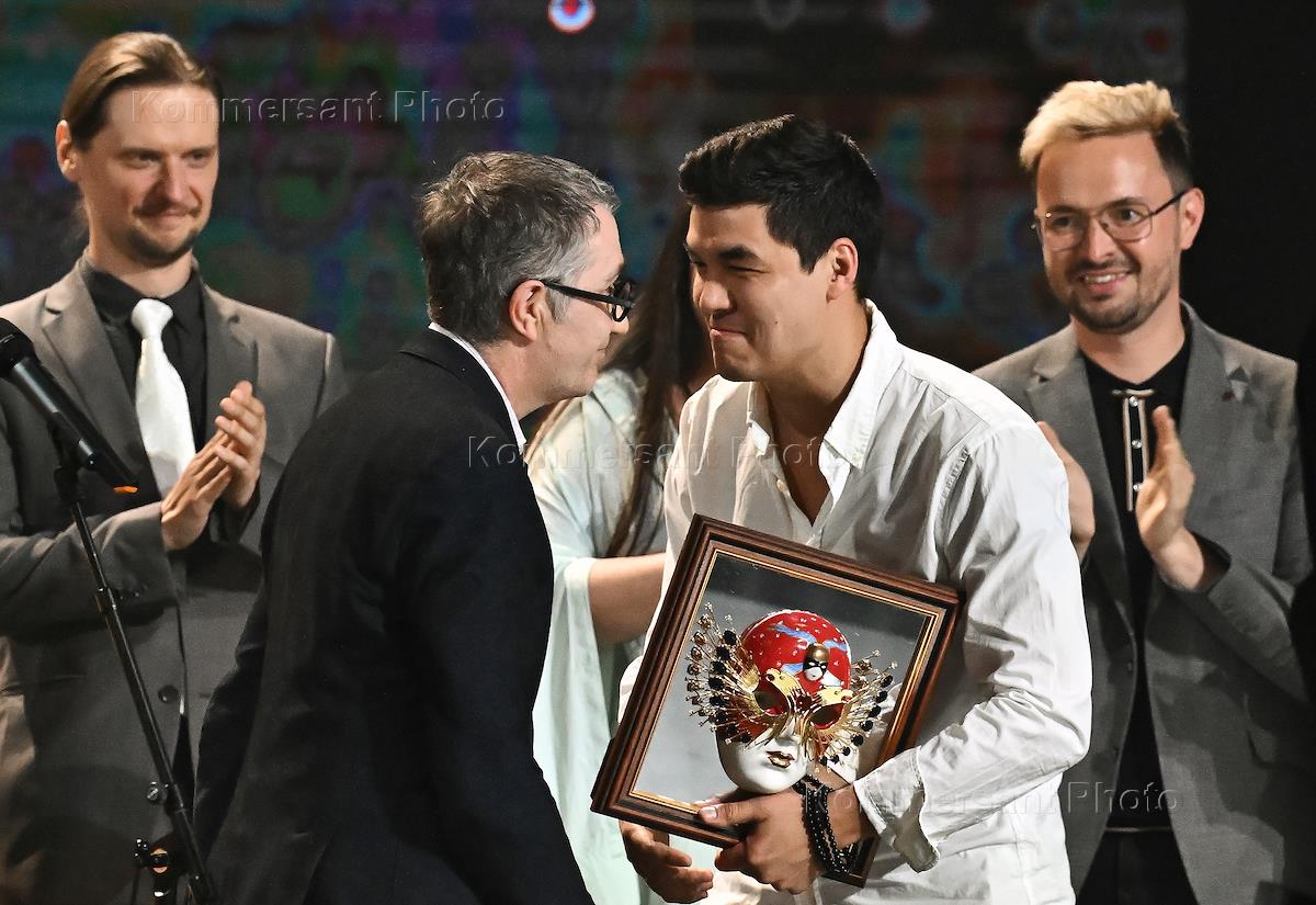 XXX церемония вручения Российской национальной театральной премии "Золотая Маска" по итогам сезона 2022-2023 в Государственном академическом театре имени Евгения Вахтангова. Режиссер Фарид Бикчантаев (второй слева), получивший награду в номинации "Лучший драматический спектакль. Большая форма".