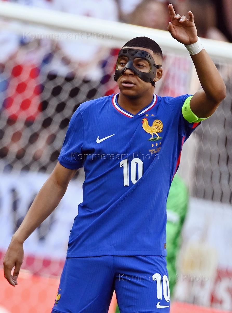 Чемпионат Европы по футболу 2024. 3-й тур. Группа D. Матч между сборными командами Франции и Польши на стадионе "Сигнал Идуна Парк". Игрок сборной команды Франции Килиан Мбаппе во время матча.