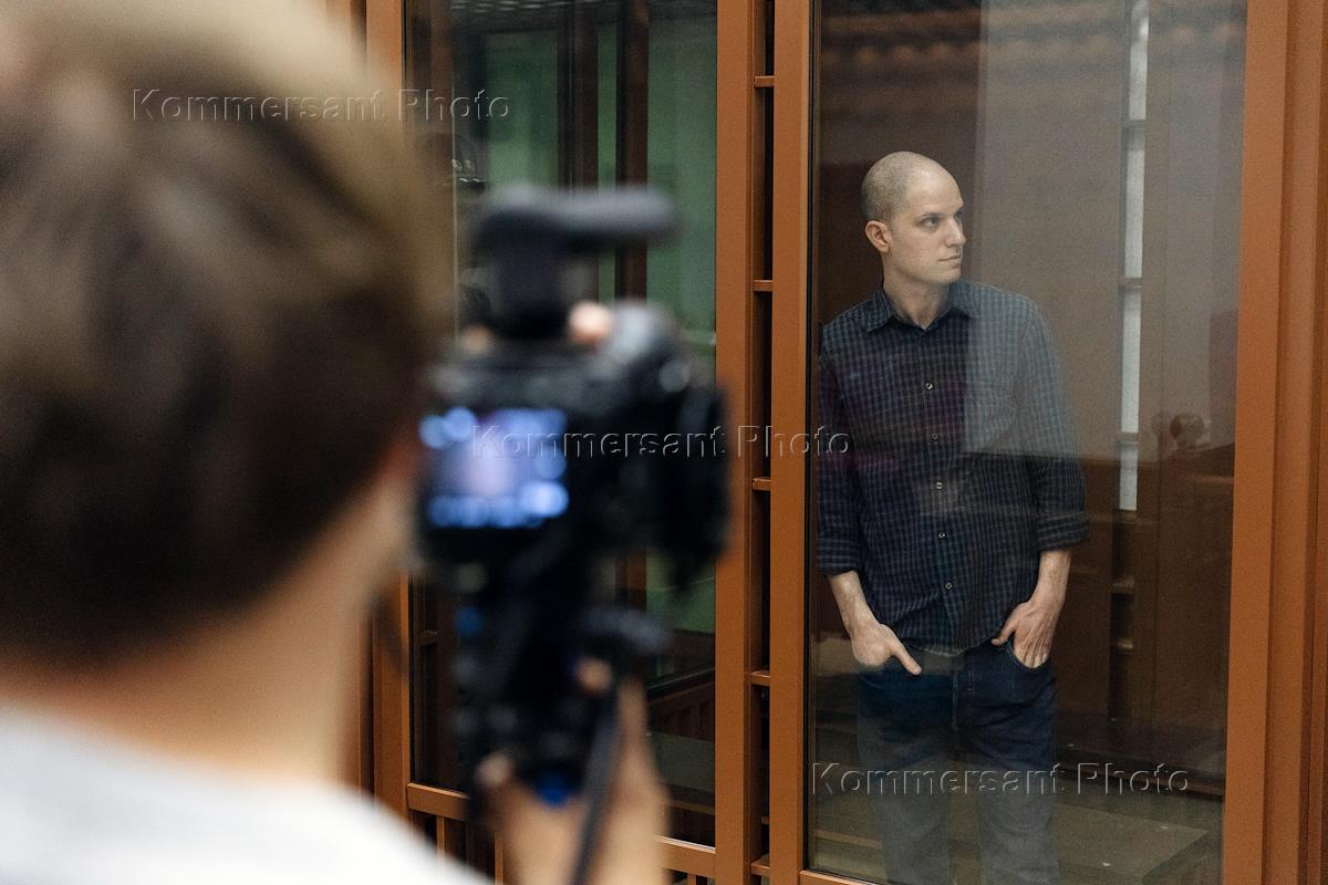 Рассмотрение по существу уголовного дела журналиста газеты Wall Street Journal (WSJ) гражданина США Эвана Гершковича, обвиняемого в шпионаже, в Свердловском областном суде. Журналист газеты Wall Street Journal (WSJ) гражданин США Эван Гершкович во время заседания суда.
