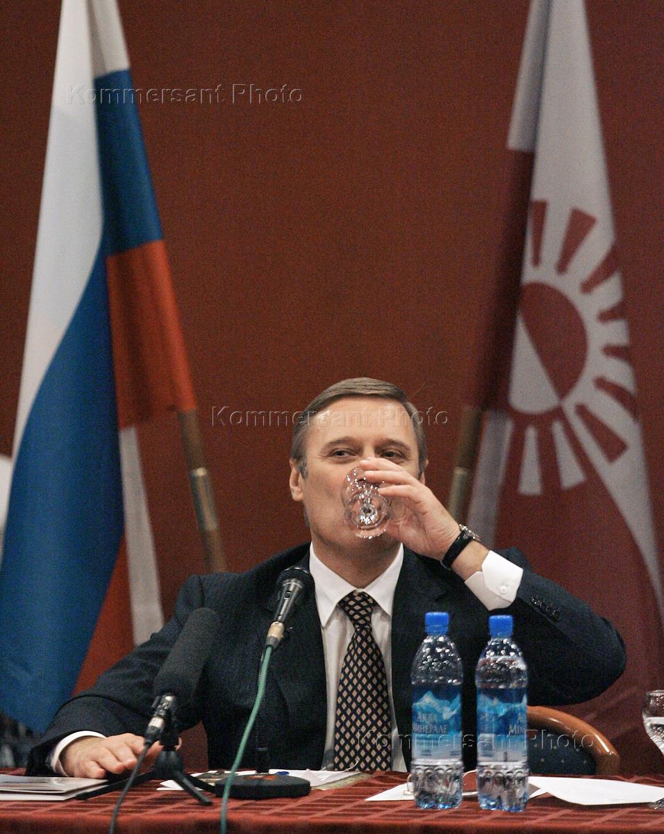 Лидер движения "Народно-демократический союз" (НДС) Михаил Касьянов после заседания "круглого стола" в местном штабе НДС.