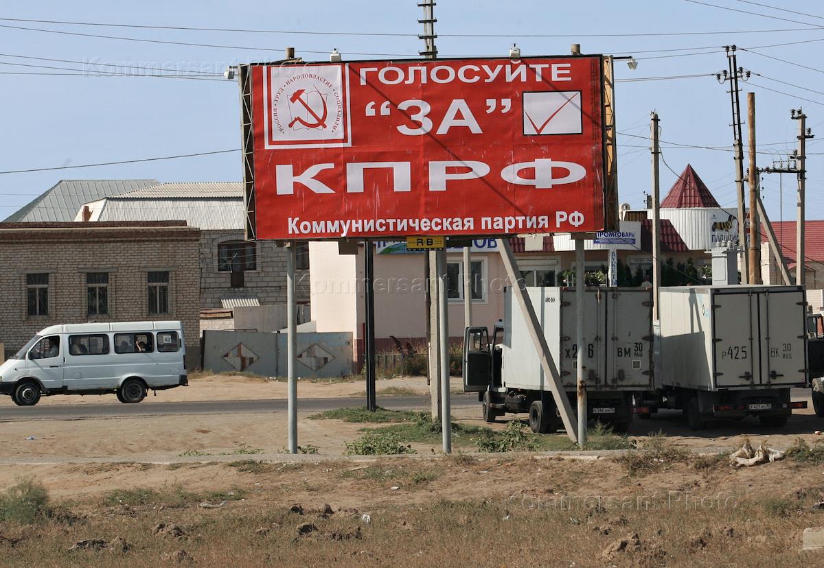 Подготовка к выборам депутатов областной думы, которые состоятся 8 октября 2006 года. Предвыборная агитация Коммунистической партии России (КПРФ) на улице города.
