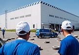 Всероссийский конкурс профессионального мастерства работников почты на территории Новосибирского логистического почтового центра в городе Обь. Жанровая фотография. Участник конкурса меняет колесо у служебной машины.