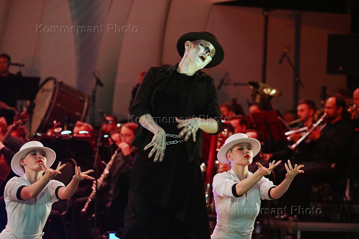 Балет "Жар-птица" композитора Игоря Стравинского в исполнении коллектива Banda I'll в постановке хореографа Артемия Манукяна в Большом амфитеатре Парка "Зарядье". Генеральный директор концертного зала "Зарядье", дирижер Иван Рудин (в центре) во время балета.