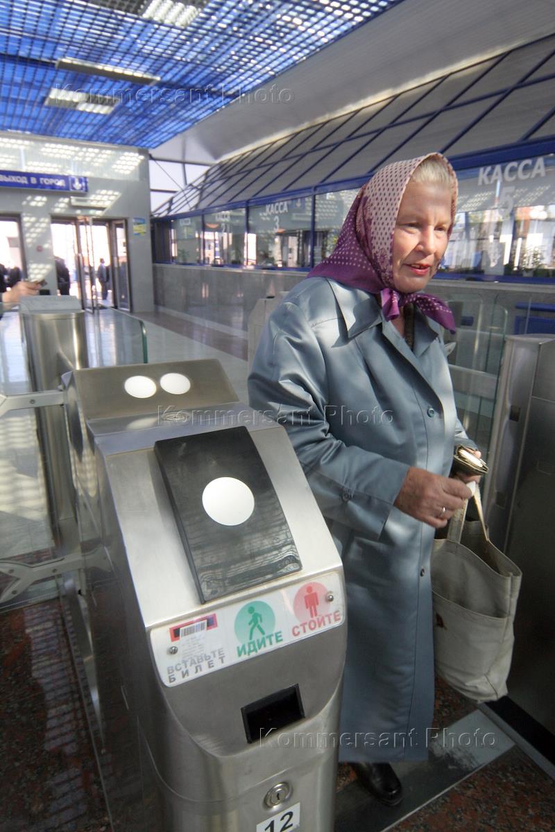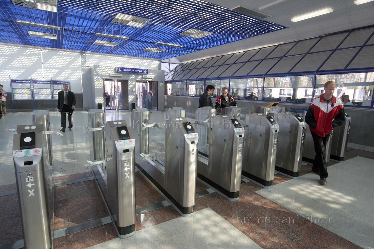 [English translation in progress (2)] Turnstiles in a cash hall of suburban railway station.