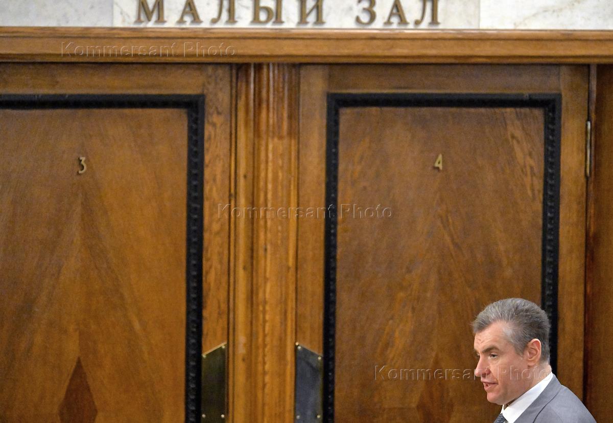 Пленарное заседание Государственной думы (ГД) России. Председатель партии Либерально-демократическая партия России (ЛДПР), руководитель фракции ЛДПР в ГД России Леонид Слуцкий перед началом заседания.