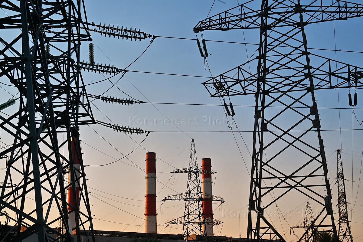 Виды Москвы. Жанровая фотография. Градирни тепловой электростанции (ТЭЦ) "ТЭЦ-21" на Ижорской улице и опора линии электропередачи.