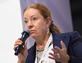 Финансовый конгресс Банка России в Большом концертном зале "Октябрьский". День первый. Пленарная сессия "Долгосрочные ресурсы для экономики - ключевой приоритет развития финансового рынка". Научный руководитель Центра Системных Трансформаций экономического факультета МГУ имени М.В.Ломоносова Анна Белова во время сессии.