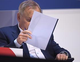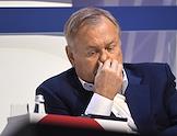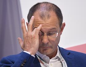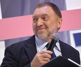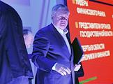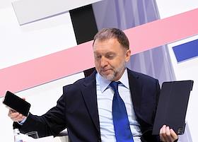 Финансовый конгресс Банка России в Большом концертном зале "Октябрьский". День первый. Пленарная сессия "Рост в условиях ограничений". Председатель наблюдательного совета Института экономики роста имени П.А.Столыпина Олег Дерипаска во время сессии.