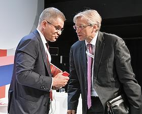 Финансовый конгресс Банка России на площадке Новой сцены Александринского театра. День третий. Сессия "Высокие процентные ставки в мире - это новая норма?". Президент Центра международных отношений и устойчивого развития (CIRSD) Вук Еремич (слева) после сессии.