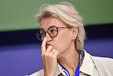 Финансовый конгресс Банка России на площадке Новой сцены Александринского театра. День третий. Сессия "Высокие процентные ставки в мире - это новая норма?". Советник председателя Центрального Банка России Ксения Юдаева перед началом сессии.