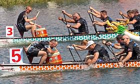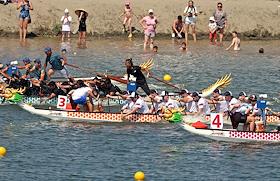 Международный культурно-спортивный фестиваль "Алтайская регата. Фестиваль Драконов". Соревнования по гребле на драгонботе на Гребном канале на реке Обь.