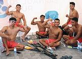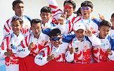 Международный культурно-спортивный фестиваль "Алтайская регата. Фестиваль Драконов". Соревнования по гребле на драгонботе на Гребном канале на реке Обь. Команда Индонезии на церемонии награждения.