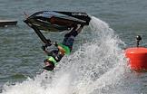 Международный культурно-спортивный фестиваль "Алтайская регата. Фестиваль Драконов". Церемония открытия фестиваля. Жанровая фотография. Спортсмен на водном мотоцикле во время показательного выступления.