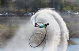 Международный культурно-спортивный фестиваль "Алтайская регата. Фестиваль Драконов". Церемония открытия фестиваля. Жанровая фотография. Спортсмен на гидрофлайте.