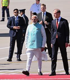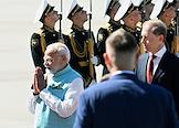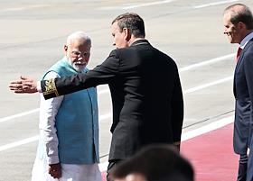 Церемония встречи премьер-министра Индии Нарендра Моди в аэропорту "Внуково-2". Премьер-министр Индии Нарендра Моди во время церемонии.