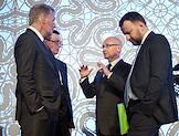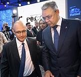 Встреча президента России Владимира Путина с победителями конкурса "Это у нас семейное" на Международной выставке-форуме "Россия" на ВДНХ. Первый заместитель главы администрации президента России Сергей Кириенко (слева) и губернатор Ставропольского края Владимир Владимиров (справа) во время встречи.