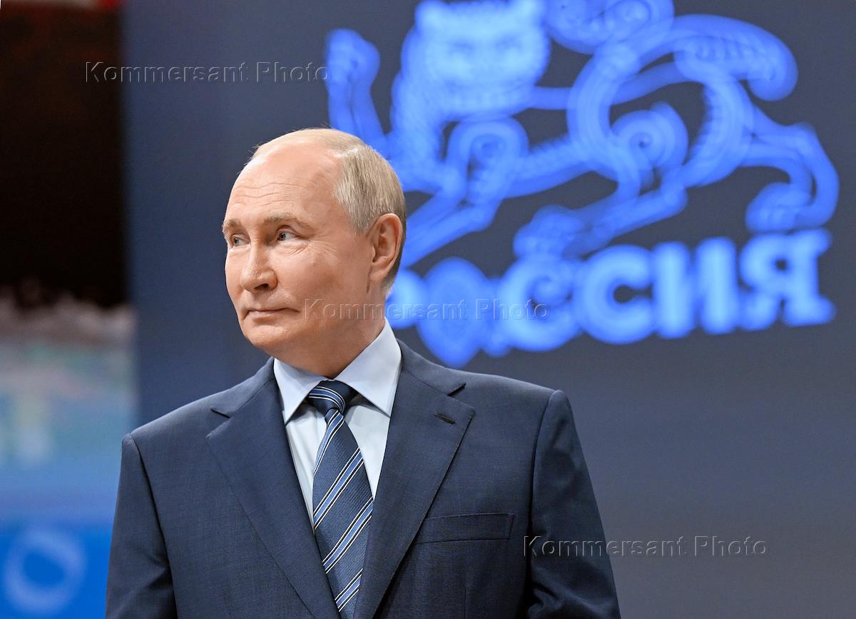 Президент России Владимир Путин во время встречи с победителями конкурса "Это у нас семейное" на Международной выставке-форуме "Россия" на ВДНХ.