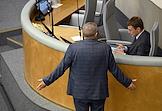 Пленарное заседание Государственной думы (ГД) России. Министр финансов России Антон Силуанов (слева) перед началом заседания.