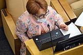 Пленарное заседание Государственной думы (ГД) России. Член комитета ГД России по бюджету и налогам Оксана Дмитриева во время заседания.