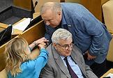 Пленарное заседание Государственной думы (ГД) России. Председатель комитета ГД России по делам национальностей Геннадий Семигин (слева) во время заседания.
