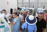 Работа отделения Российского национального коммерческого банка (РНКБ). Банк ВТБ приступает к интеграции РНКБ, которая завершится в 2025 году переходом банка под бренд ВТБ. Жанровая фотография. Клиенты банка у банкоматов.