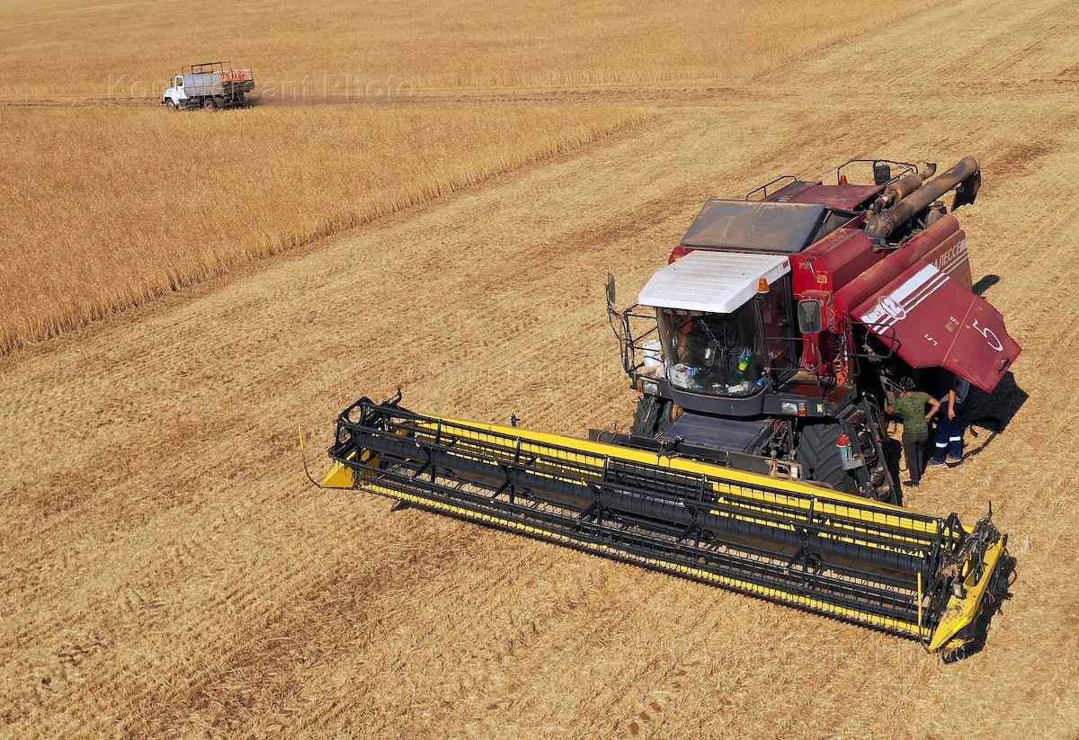 Уборочная кампания в Октябрьском районе Волгоградской области. Жанровая фотография. Уборка урожая зерновых на полях АО "Аксайское".