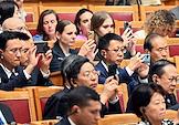 Рабочая поездка президента России Владимира Путина в Санкт-Петербург. Х Парламентский форум БРИКС в Таврическом дворце. Участники сессии № 1 пленарного заседания Форума в расширенном формате с участием представителей парламентских делегаций стран БРИКС, приглашенных стран и межпарламентских организаций.