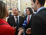Рабочая поездка президента России Владимира Путина в Санкт-Петербург. Х Парламентский форум БРИКС в Таврическом дворце. Сессия № 1 пленарного заседания Форума в расширенном формате с участием представителей парламентских делегаций стран БРИКС, приглашенных стран и межпарламентских организаций. Посол Бразилии в России Родриго Де Лима Баэна Соарес (слева) и первый заместитель председателя Федерального сената Национального конгресса Бразилии Венезиано Витал ду Регу Сегундо Нето после заседания.