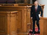 Рабочая поездка президента России Владимира Путина в Санкт-Петербург. Х Парламентский форум БРИКС в Таврическом дворце. Сессия № 1 пленарного заседания Форума в расширенном формате с участием представителей парламентских делегаций стран БРИКС, приглашенных стран и межпарламентских организаций. Заместитель руководителя администрации президента России, пресс-секретарь президента Дмитрий Песков во время заседания.