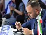 XXXIII Международный фестиваль искусств "Славянский базар в Витебске". Церемония подписания соглашения между Международным фестивале искусств "Славянский базар в Витебске" и Международным музыкальным фестивале KAVKAZ MUSIC FEST в Международном пресс-центре концертного зала (КЗ) "Витебск". Основатель и генеральный директор Международного музыкального фестиваля KAVKAZ MUSIC FEST Тимур Хацаев во время церемонии.