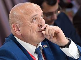 XXXIII Международный фестиваль искусств "Славянский базар" в Витебске. День национальных культур стран – участниц Шанхайской организации сотрудничества (ШОС). Встреча министров культуры стран-участниц ШОС "Диалог культур - фактор единения народов стран ШОС" в Международном пресс-центре концертного зала (КЗ) "Витебск". Министр культуры Беларуси Анатолий Маркевич во время встречи.