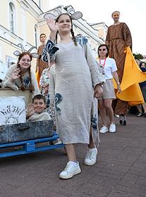 XXXIII Международный фестиваль искусств "Славянский базар" в Витебске. День национальных культур стран – участниц Шанхайской организации сотрудничества (ШОС). Шествие уличных артистов во время феста уличного искусства "На семи ветрах" в рамках фестивальной программы.