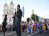 Виды Витебска во время Международного фестиваля искусств "Славянский базар". Жанровая фотография. Ростовые куклы на площади возле Свято-Успенского кафедрального собора.