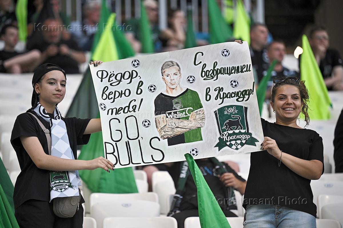 OLIMPBET Суперкубок России по футболу. Матч между командами "Зенит" (Санкт-Петербург) - "Краснодар" (Краснодар) на стадионе "Волгоград Арена". Болельщики команды "Краснодар" на зрительской трибуне перед началом матча.