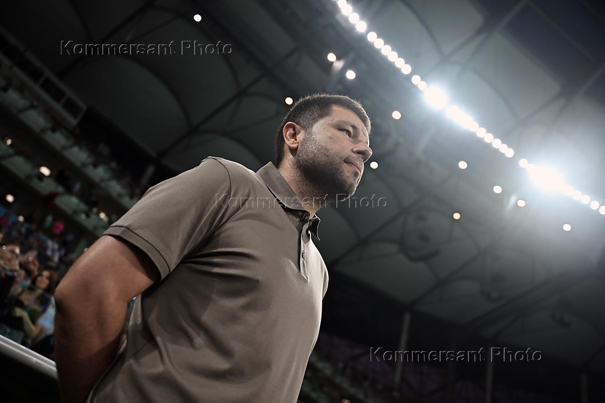 OLIMPBET Суперкубок России по футболу. Матч между командами "Зенит" (Санкт-Петербург) - "Краснодар" (Краснодар) на стадионе "Волгоград Арена". Главный тренер команды "Краснодар" Мурад Мусаев перед началом матча.