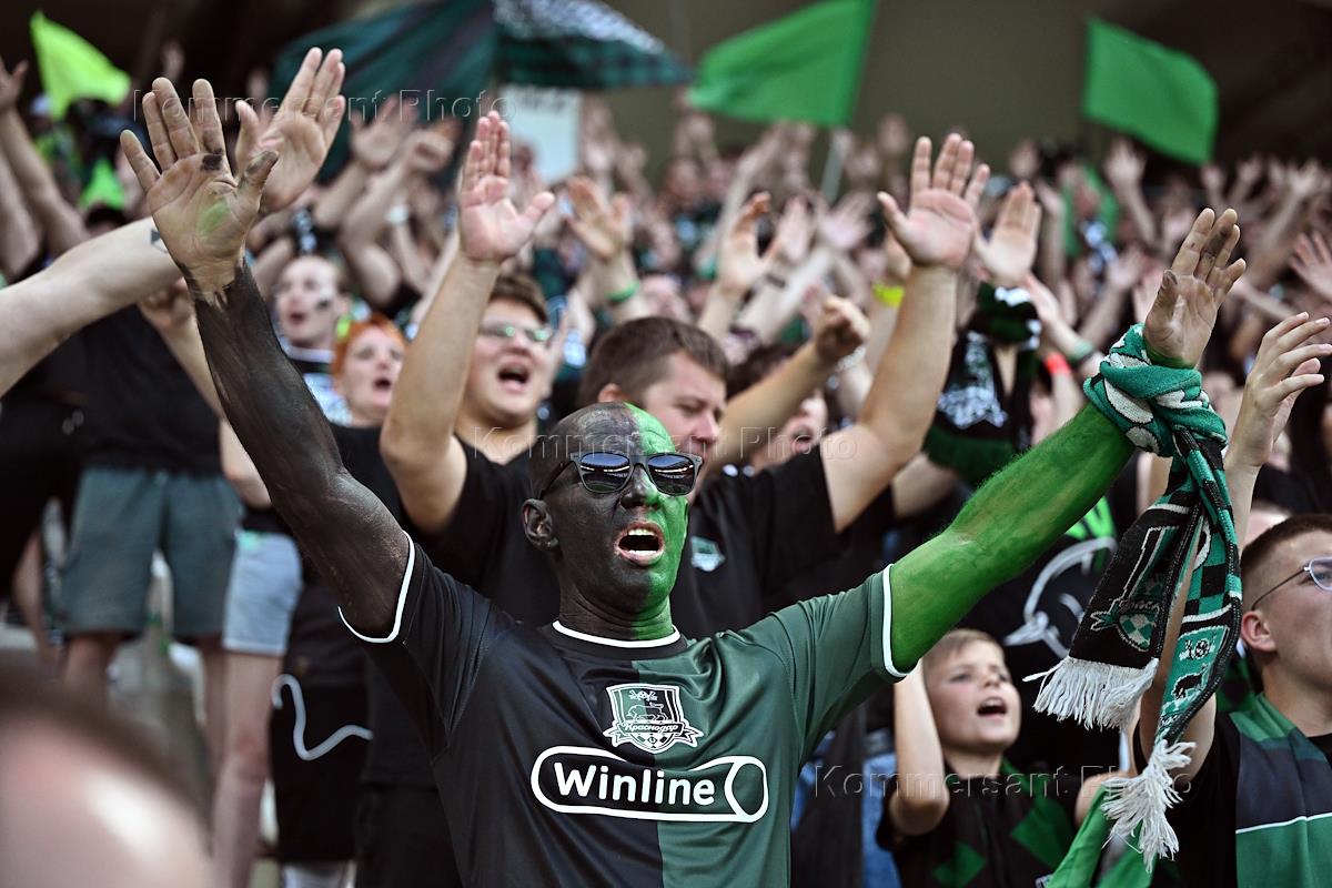 OLIMPBET Суперкубок России по футболу. Матч между командами "Зенит" (Санкт-Петербург) - "Краснодар" (Краснодар) на стадионе "Волгоград Арена". Болельщики команды "Краснодар" на зрительской трибуне во время матча.