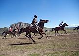 XVIII Межрегиональный праздник алтайского народа "Эл-Ойын 2024" в урочище Ойбок Усть-Канского района. Жанровая фотография. Участники игры "кок-бору" из Шебалинского района.