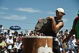XVIII Межрегиональный праздник алтайского народа "Эл-Ойын 2024" в урочище Ойбок Усть-Канского района. Жанровая фотография. Рог северного оленя работы мастера-костореза Станислая Урчимаева из Шебалинского района.