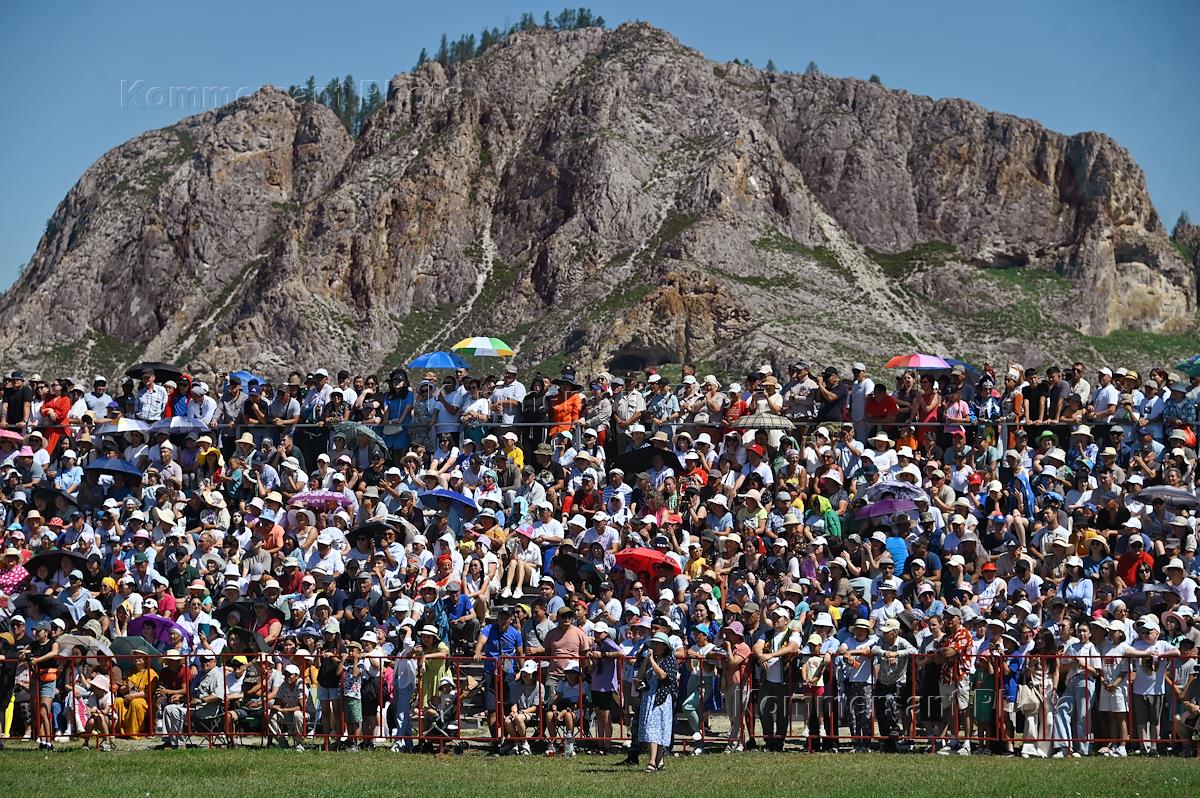 XVIII Межрегиональный праздник алтайского народа "Эл-Ойын 2024" в урочище Ойбок Усть-Канского района. Жанровая фотография. Зрители во время состязаний по национальным видам ️спорта.