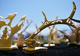 XVIII Межрегиональный праздник алтайского народа "Эл-Ойын 2024" в урочище Ойбок Усть-Канского района. Жанровая фотография. Фигурки, вырезанные из рога северного оленя, работы мастера-костореза Станислая Урчимаева из Шебалинского района.