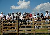 XVIII Межрегиональный праздник алтайского народа "Эл-Ойын 2024" в урочище Ойбок Усть-Канского района. Жанровая фотография. Зрители наблюдают за объездкой необученных лошадей.
