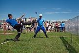XVIII Межрегиональный праздник алтайского народа "Эл-Ойын 2024" в урочище Ойбок Усть-Канского района. Жанровая фотография. Участники во время состязаний по национальным видам ️спорта.