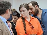 Оглашение приговора по делу о гибели младенца в роддоме №4 при московской больнице имени В.В.Виноградова в Гагаринском районном суду. Одна из обвиняемых по делу, акушер-гинеколог Анастасия Каюмова (вторая справа) во время заседания суда.
