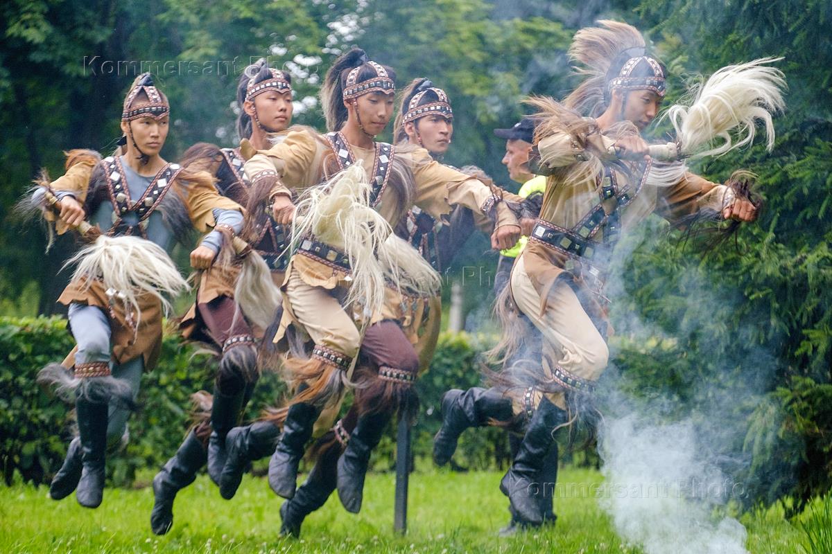 Yakut traditional summer holiday "Ysyakh" in Sampsonievsky Garden. Folk dances.