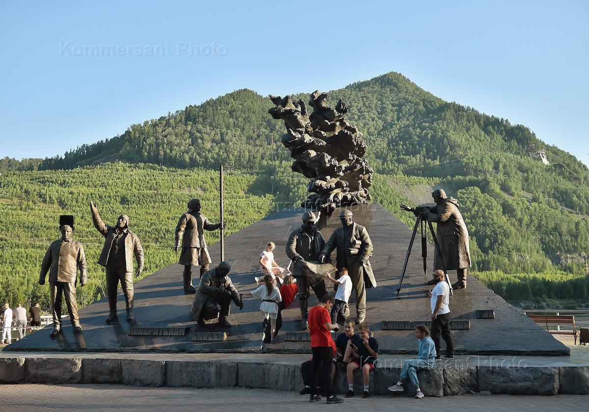 Саяно-Шушенской ГЭС. Памятник "Покорителям Енисея" в поселке Черемушки. Жанровая фотография.