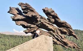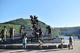 Саяно-Шушенская ГЭС. Памятник "Покорителям Енисея" в поселке Черемушки. Жанровая фотография.